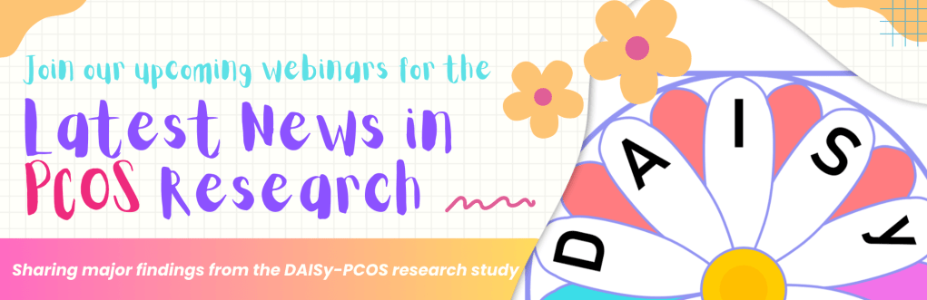 These webinars are open to anyone – all are welcome! We are particularly keen for women who have taken part in the DAISy-PCOS study to be part of these upcoming events, so that we can say a big thank you and so that they can learn about how their participation has helped make a real difference to the science and understanding of PCOS.